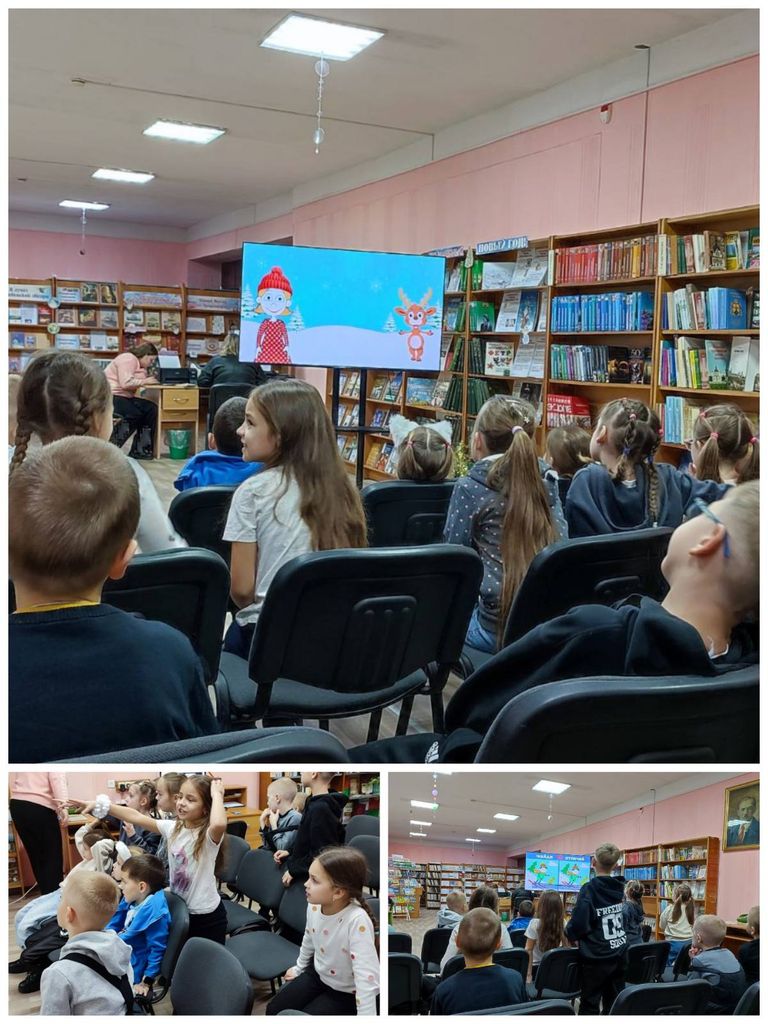 воспитанники лагеря посетили школьную библиотеку, где прошел час кино «Новогоднее путешествие», где ребята