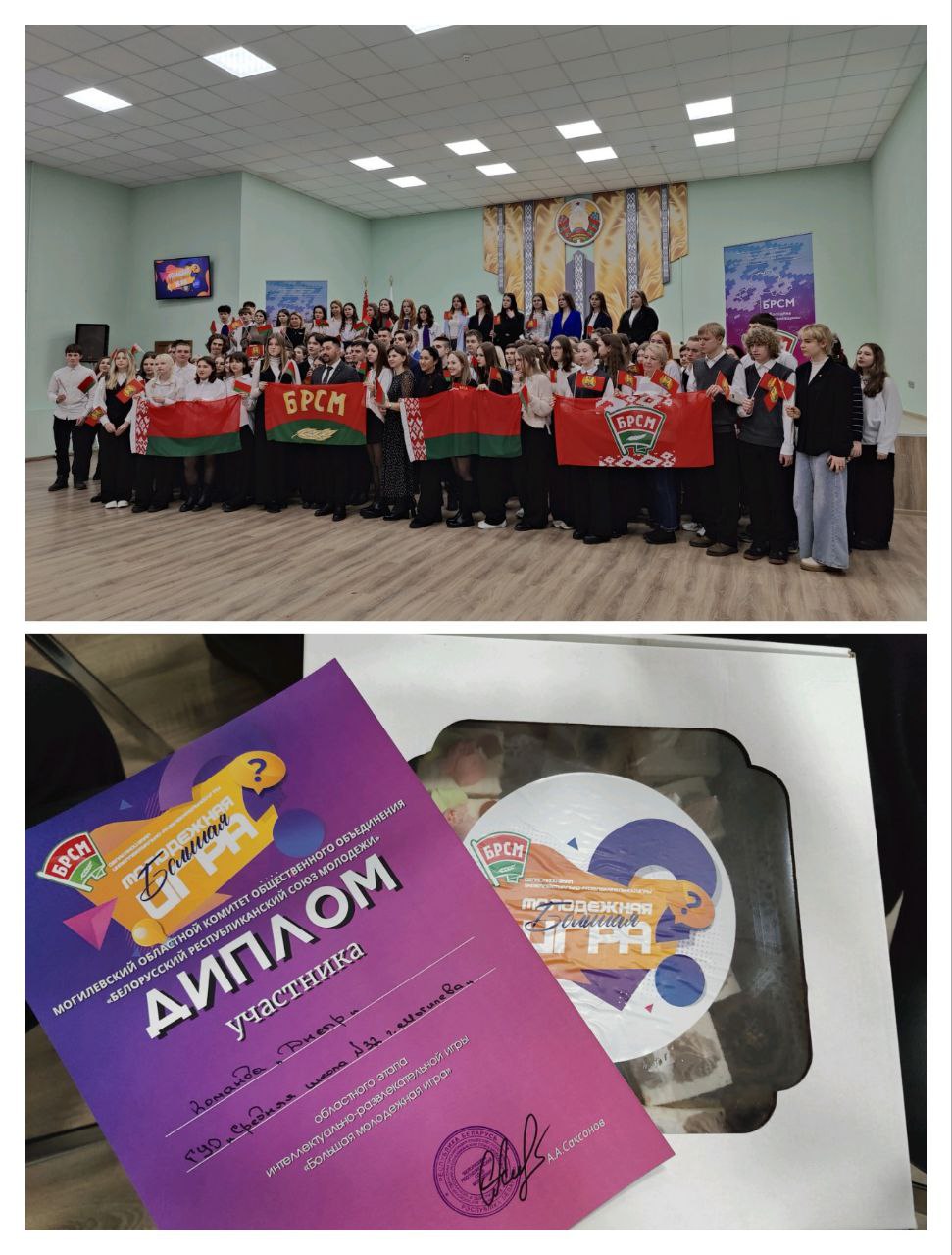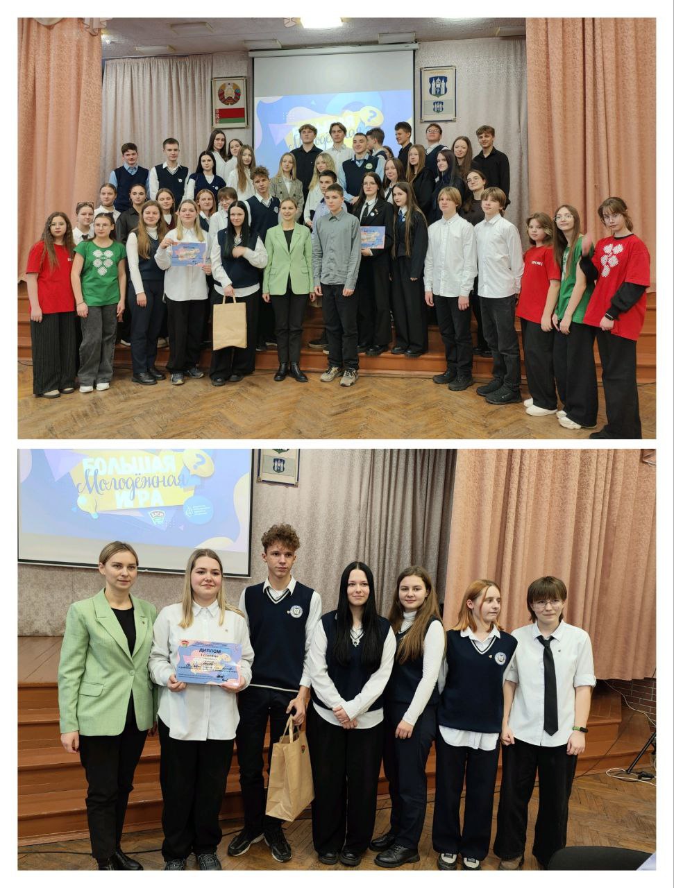 28 января 2025 года команда "Днепр" нашей школы приняла участие в областном этапе интеллектуально - развлекательной игре "Большая молодежная игра", которая проходила в УО "Могилевском государственном электротехническом колледже".