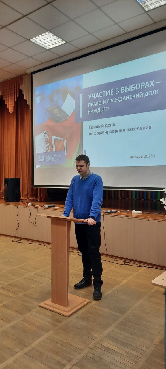 16 января 2025 года в преддверии главного общественно-политического события-выборов Президента Республики Беларусь, в государственном учреждении образования "Средняя школа 32г. Могилева" прошёл единый день информирования по теме "Участие в выборах - право и гражданский долг каждого".