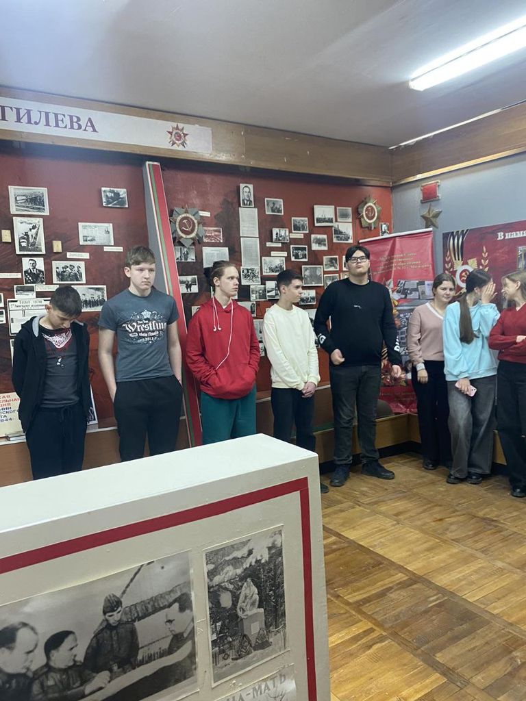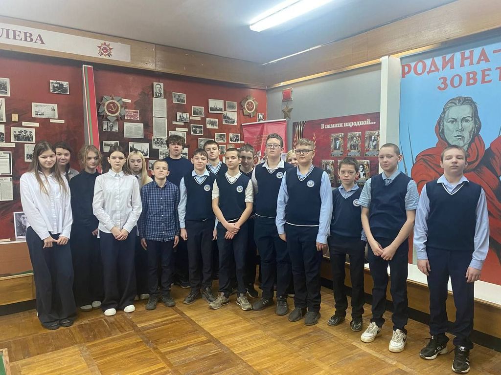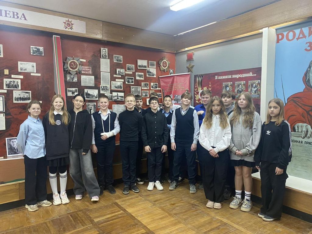 24.01 в Школьном Музее Боевой Славы учащимся 7 «В» класса была проведена экскурсия на тему «Жертвы геноцида в период Великой Отечественной войны». Целью мероприятия является создание условий для понимания необходимости сохранения исторической правды о преступлениях нацистов, формирование патриотизма, как качества личности будущего гражданина через трагические события истории Республики Беларусь.