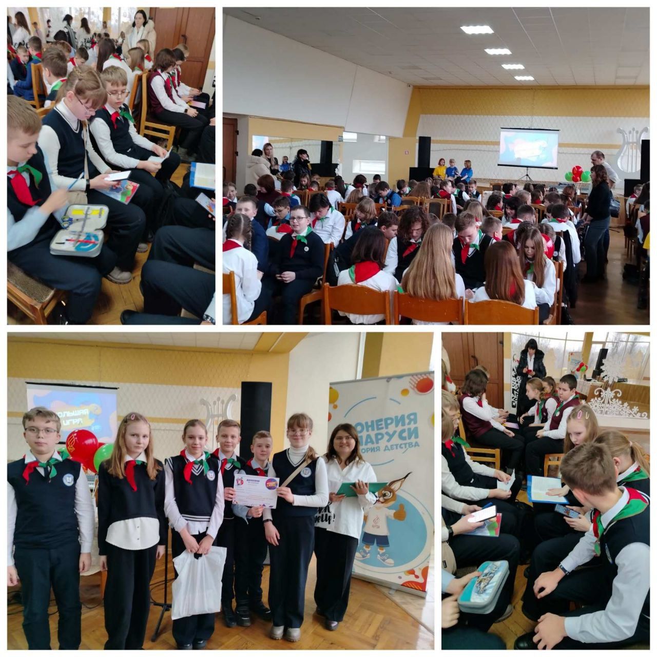 10 января 2025 года в школе №18 прошёл районный этап республиканского интеллектуально - развлекательного квиза "Большая пионерская игра". Игра включала в себя шесть туров по шесть вопросов и 7-й риск-тур с тремя вопросами повышенной сложности. Темы заданий касались истории образования БРПО и БРСМ, математического и музыкального тура, а также тур посвящённый Году качества и истории ВОВ. В ходе игры наши ребята продемонстрировали свой интеллект, эрудицию и смекалку. На мероприятии выступил заместитель прокурора г. Могилева Е. Г. Фурманов с лекцией на тему "Подросток, правонарушения и ответственность". Команда "Днепр" нашей школы в упорной борьбе завоевала 1 призовое место.