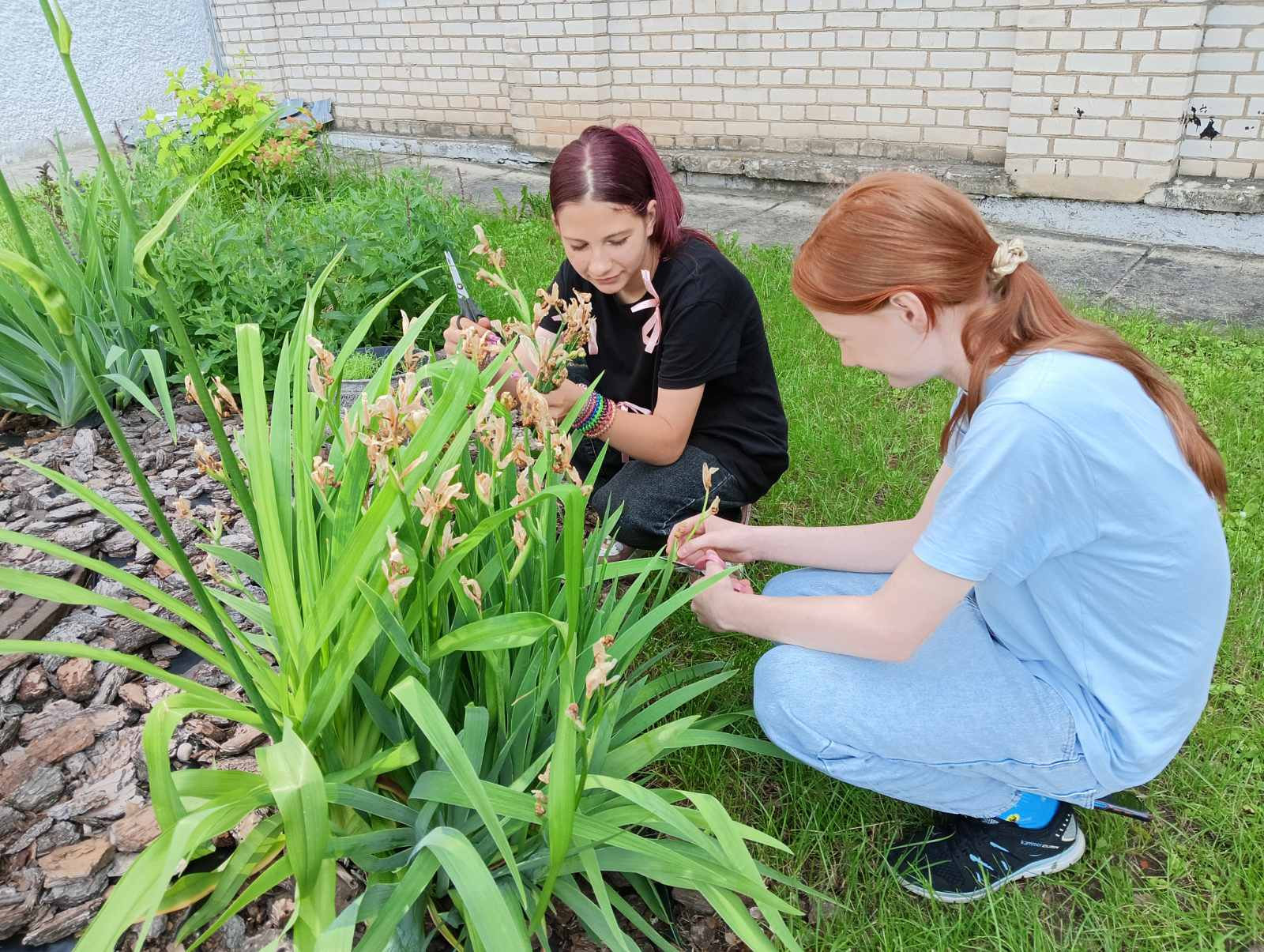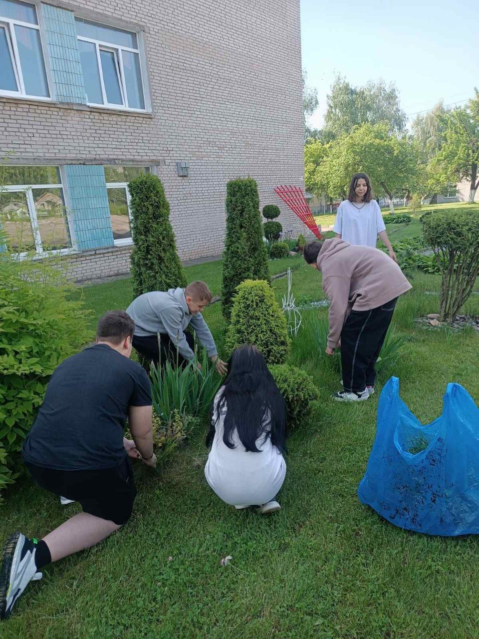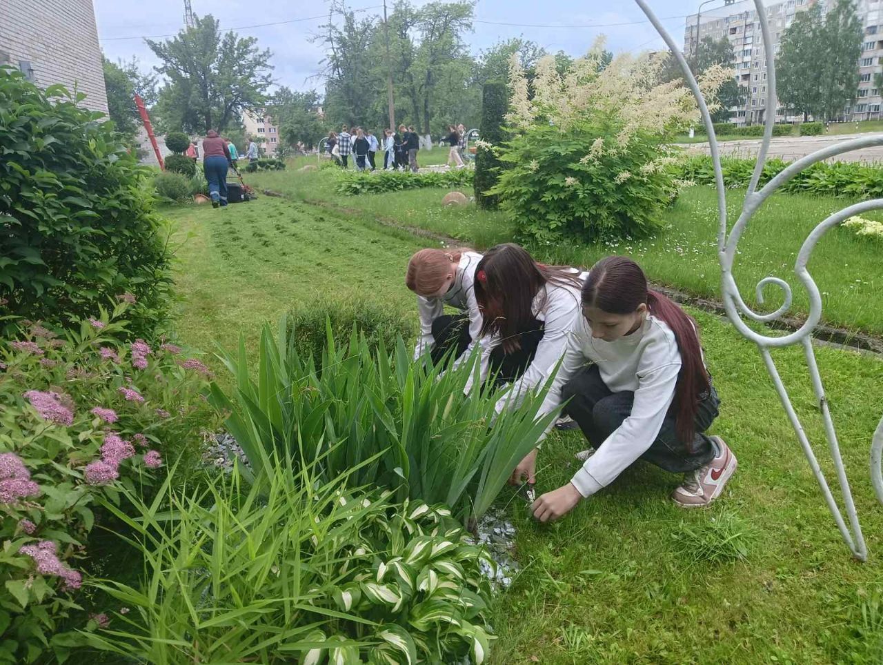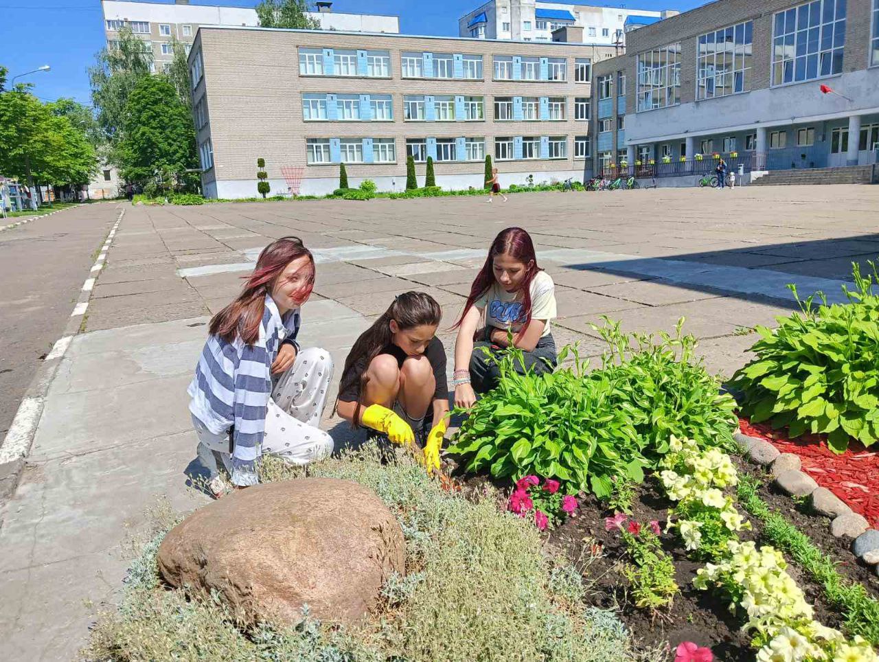 16 июня 2025 года в рамках работы экоклуба "Зеленый след" учащиеся продолжили работу по уходу за клумбами: рыхление почвы, а также срезка отцветающих соцветий.
