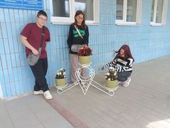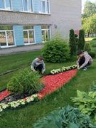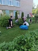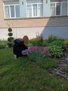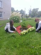 в рамках работы экоклуба "Зеленый след" учащиеся продолжили работу по уходу за клумбами и территорией школы.