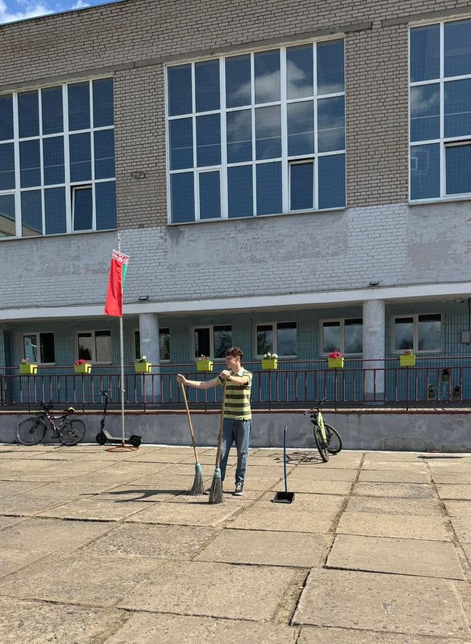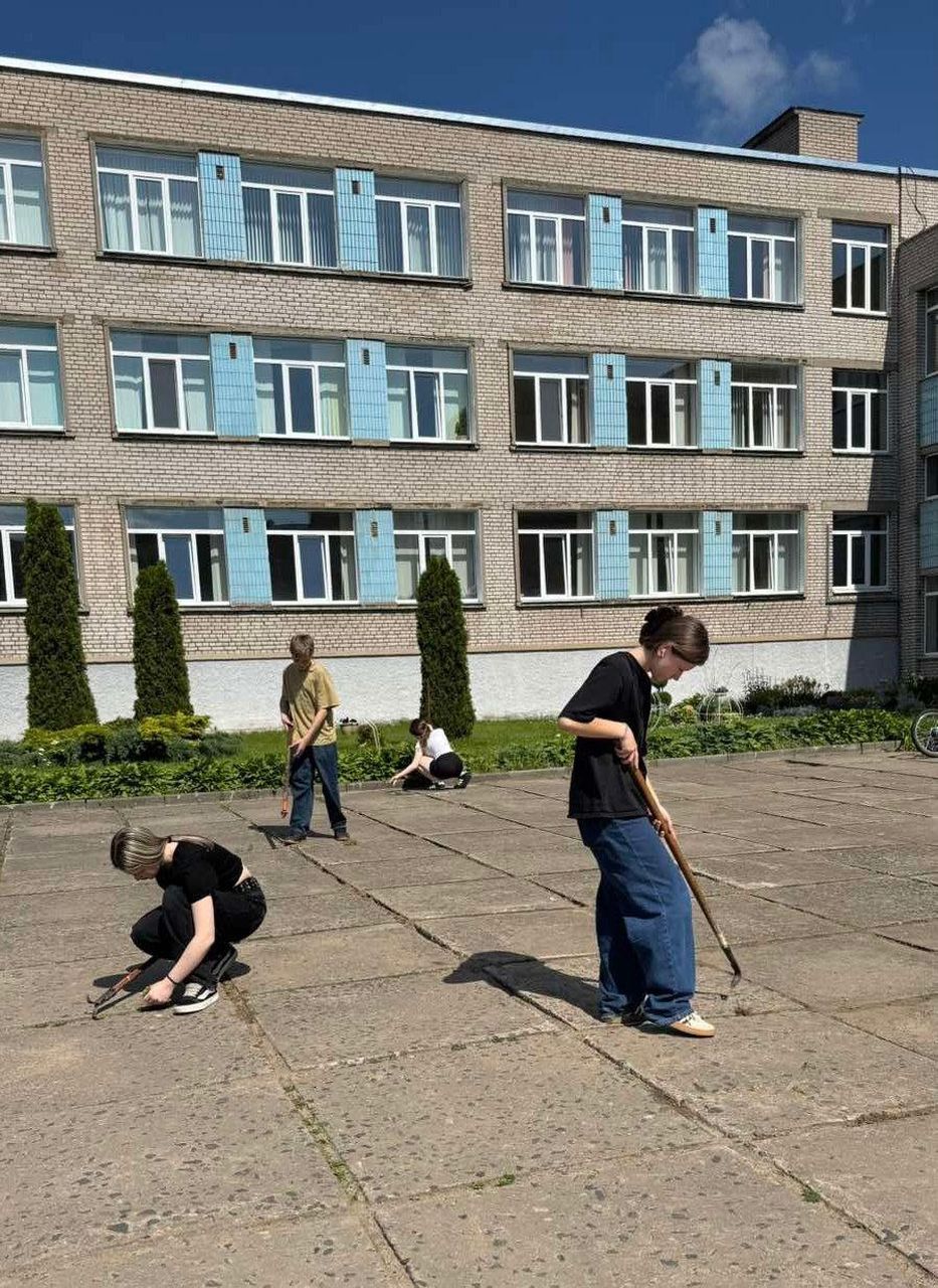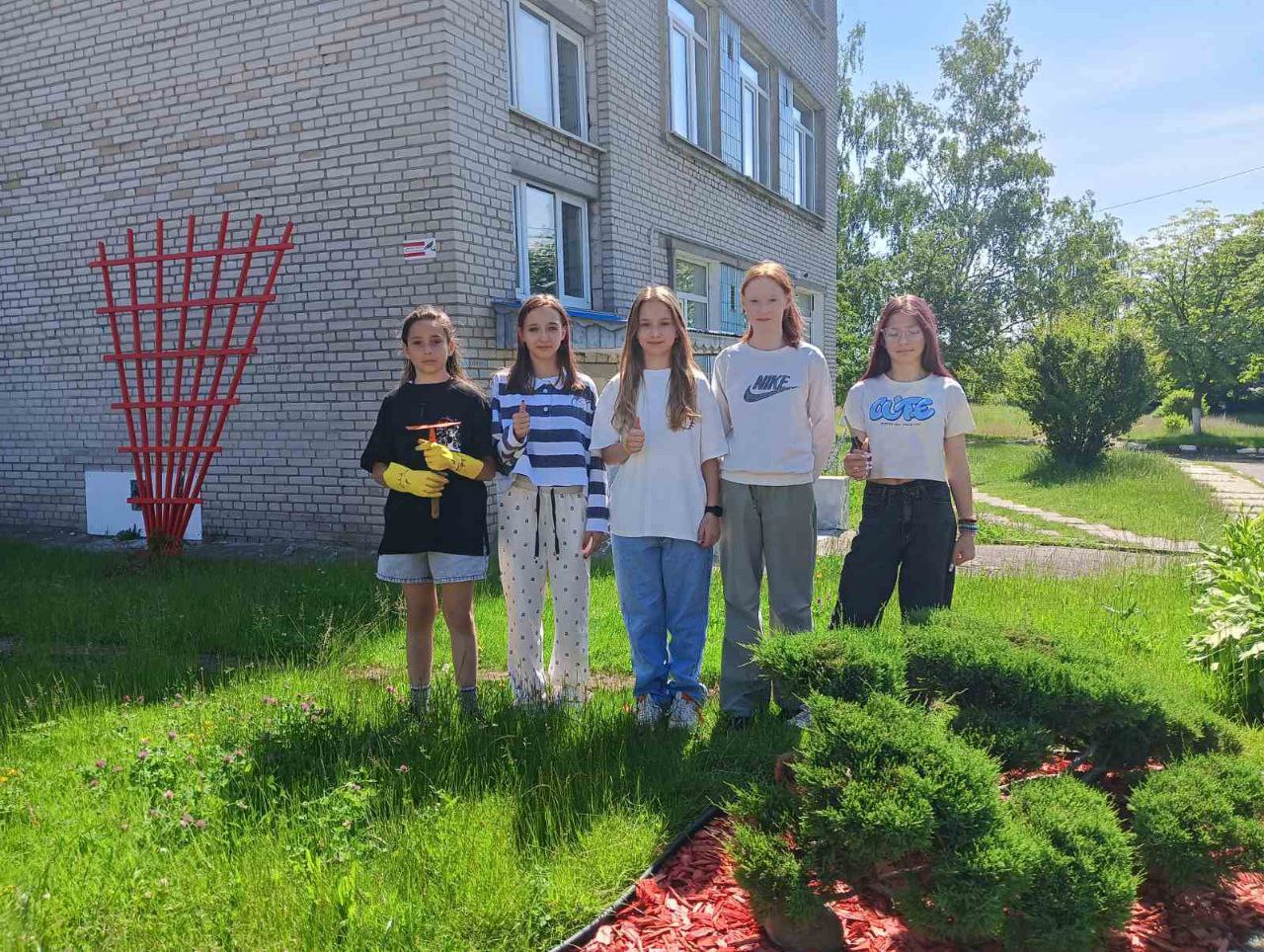 2 июня 2025 года в школе начал свою работу в период летних каникул экоклуб "Зелёный след". Ребята работали на территории школы: помогали в обрезке травы, уборке клумб, поливе растений.