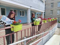 в рамках работы экоклуба "Зеленый след" учащиеся школы оказали помощь в удобрении и поливе цветущих растений.