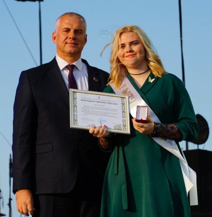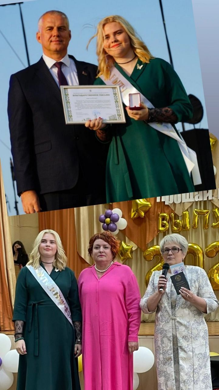 Мы гордимся нашей Скворцовой Ксенией, выпускницей 2025 года: золотая медаль, сертификат на 100 баллов по белорусскому языку. Так держать, Ксюша!