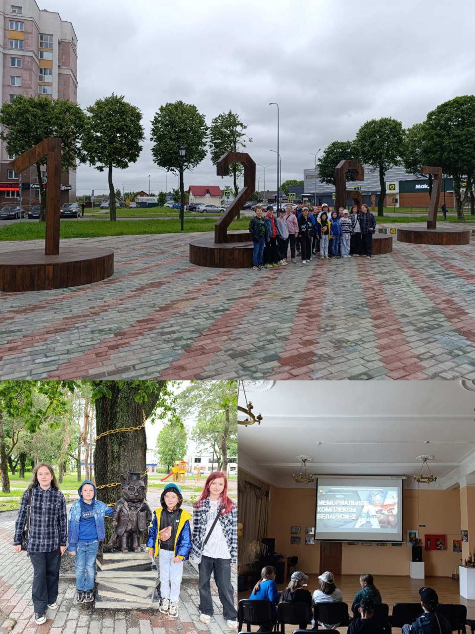 2-й отряд посетил кинотеатр "Космос", где был организован показ анимационно-документального альманаха "Мемориальные комплексы Беларуси". Ребятам рассказали про "Мемориал-кладбище жертвам концлагеря "Шталаг 352", "Государственный мемориальный комплекс Хатынь", "Мемориальный комплекс узникам Озаричского лагеря смерти", "Мемориальный комплекс "Брестская крепость-герой" и мемориал "За нашу Советскую Родину", про историю создания данных мемориальных комплексов и каким именно событиям они посвящены.
